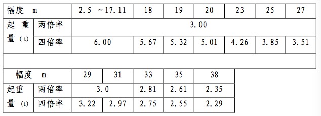 38m 臂起重特性表
