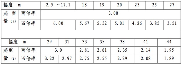 44m 臂起重特性表