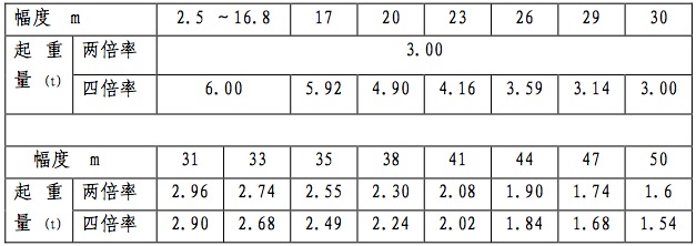 50m 臂起重特性表