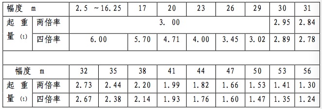 56m 臂起重特性表
